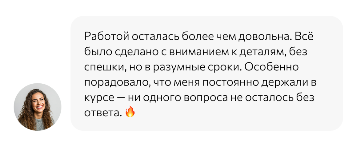 Мы берём риски на себя: после предоплаты стоимость не изменится, даже если цены на материалы пойдут вверх. Планируйте бюджет спокойно - мы гарантируем прозрачность и стабильность условий.